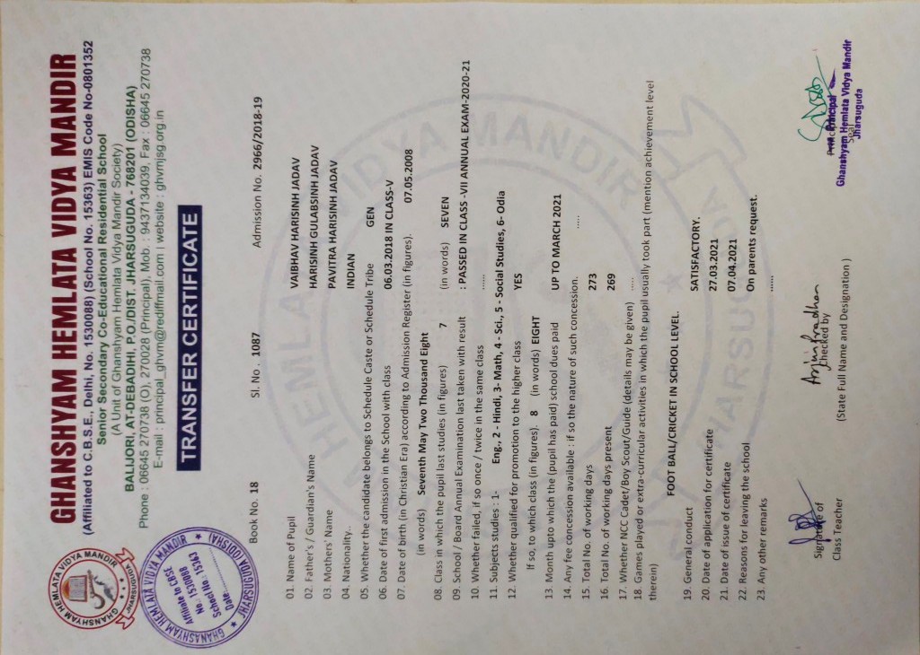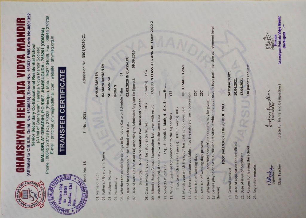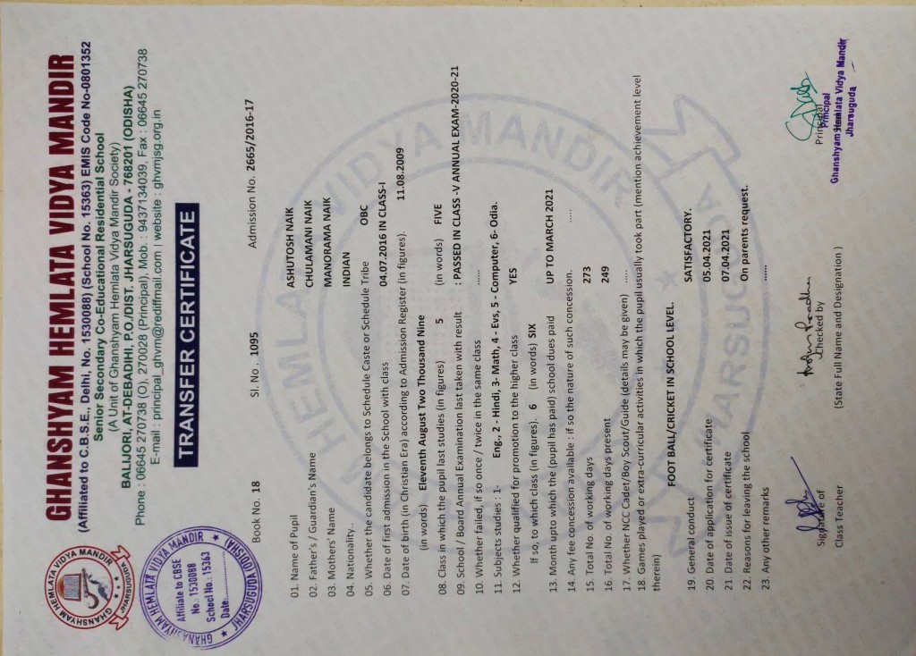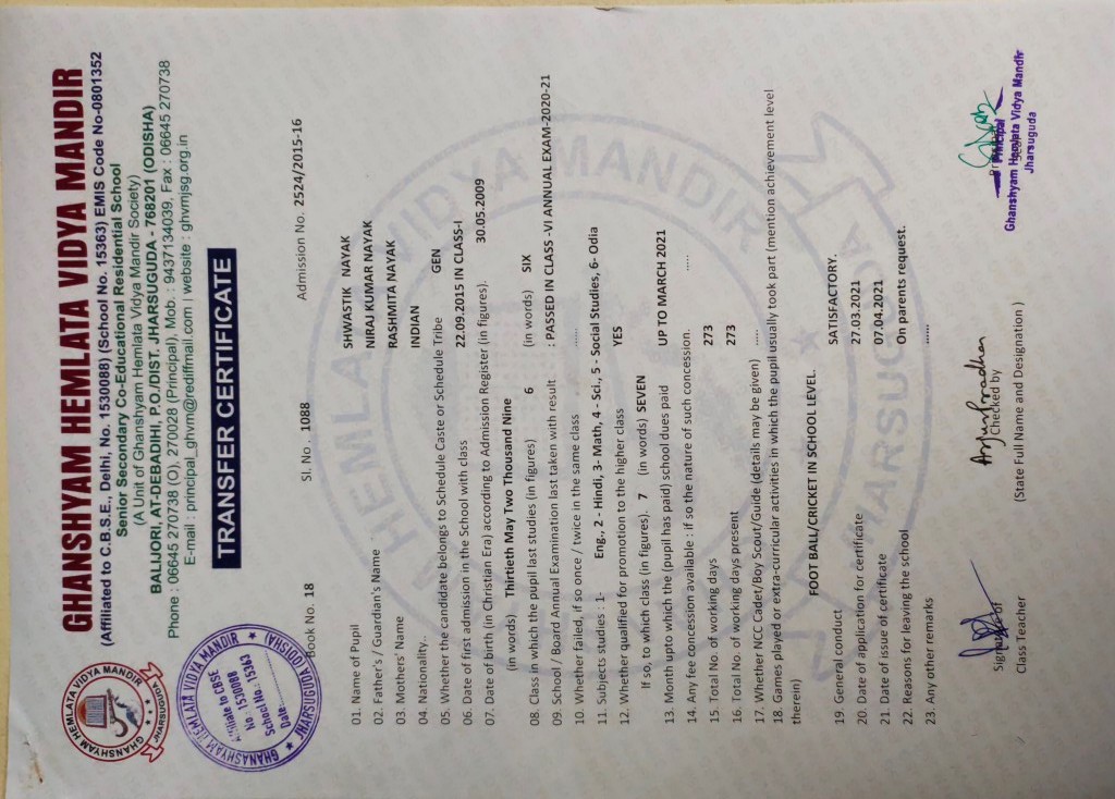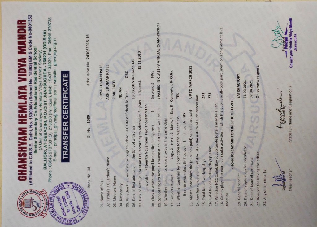 | 11 | 13-8-2022 | 1391 | Jagruti Behera | 2882/2018-19 | View/Download TC |