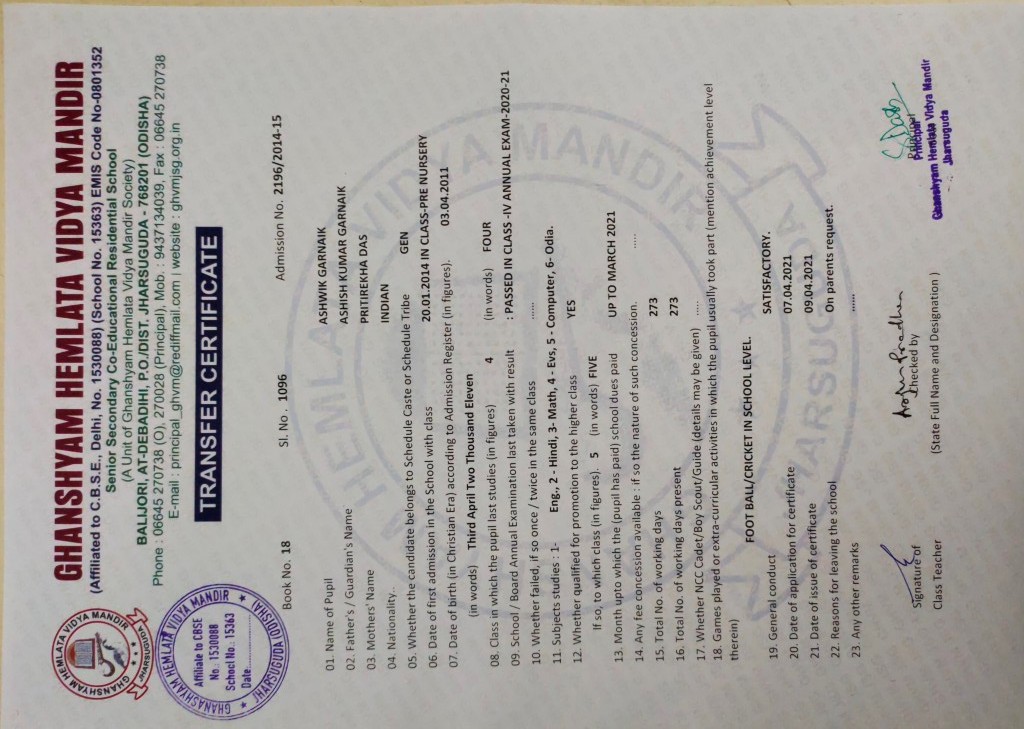 | 30 | Sep 4 2021 12:00AM | 1096 | Ashwik Garnaik | 2196/2014-15 | View/Download TC |