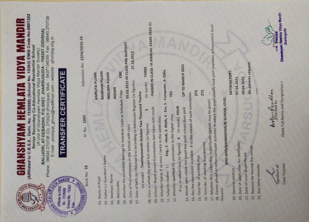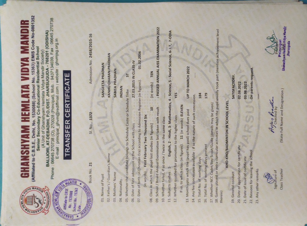 | 7 | 13-8-2022 | 1372 | Sangeeta Pradhan | 2458/2015-16 | View/Download TC |
