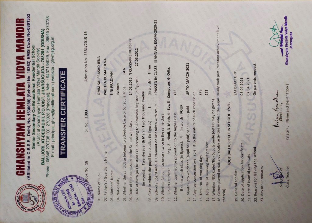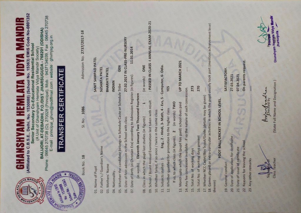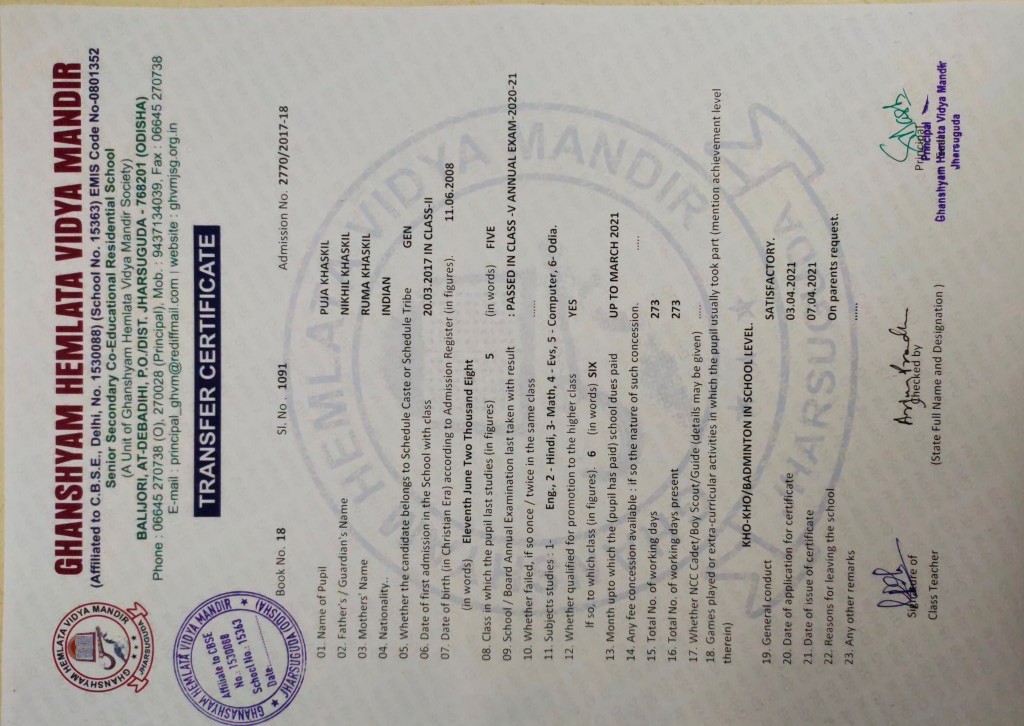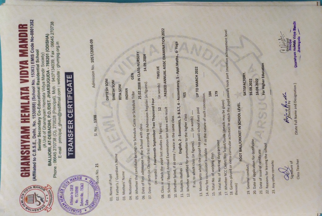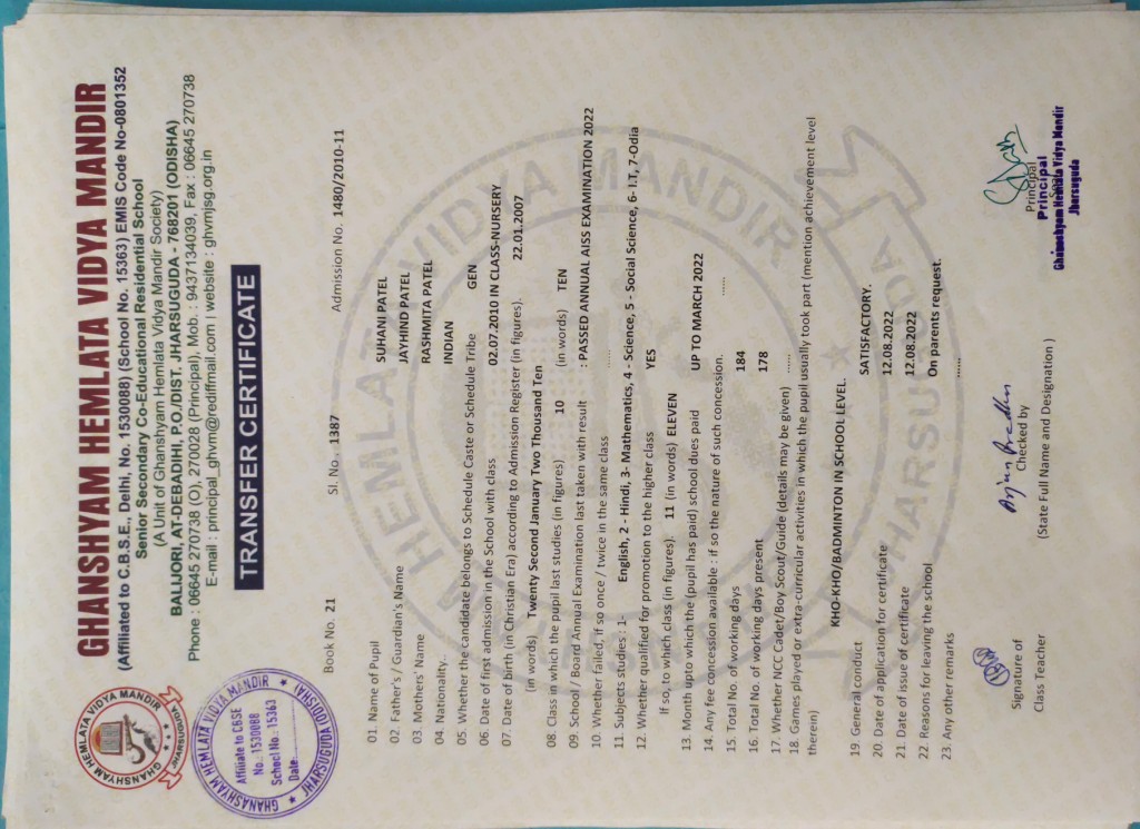 | 11 | 13-8-2022 | 1391 | Jagruti Behera | 2882/2018-19 | View/Download TC |