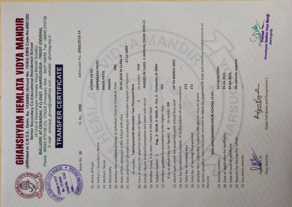 | 34 | Jul 4 2021 12:00AM | 1092 | Ayushi Patel | 2960/2018-19 | View/Download TC |