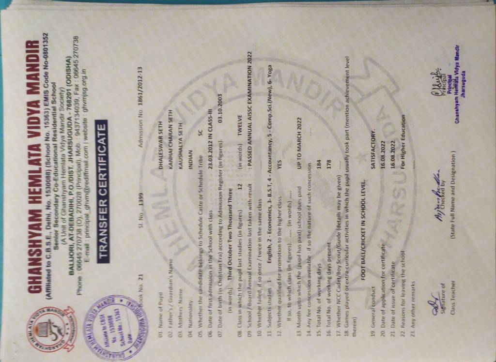 | 8 | 16-8-2022 | 1399 | Dhaleswar Seth | 1861/2012-13 | View/Download TC |